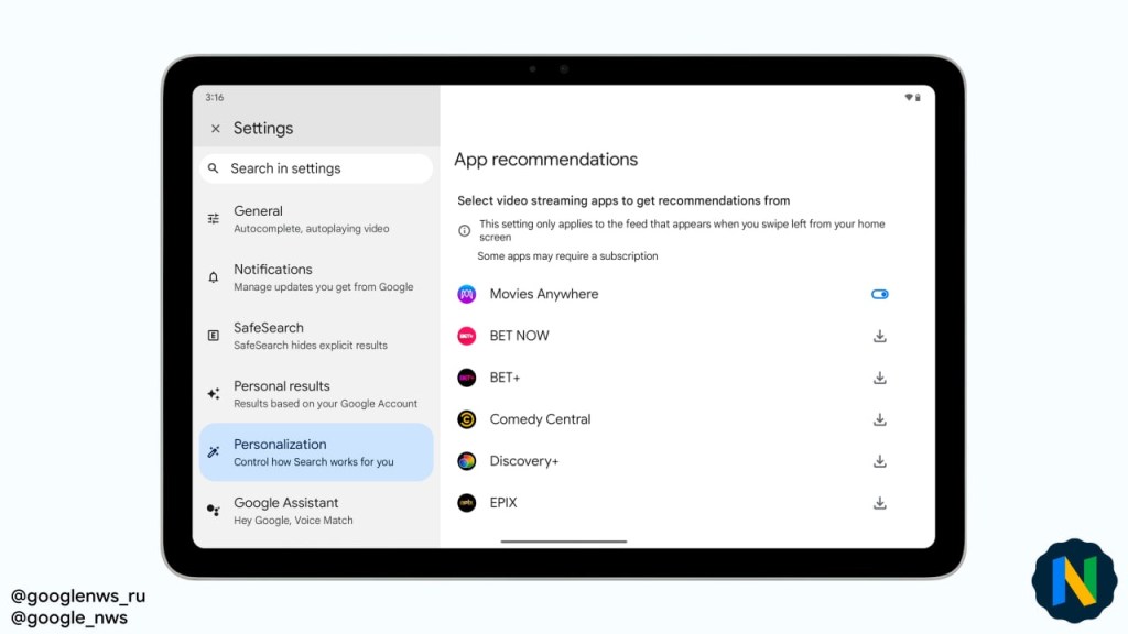 This recommendation box will only appear in the feed accessible by swiping to the left on the home screen. It will display recommended content from the streaming services installed on your device. For now, mostly US services are available, and the list of supported apps will be expanded in the future. (currently there are 22 of them).