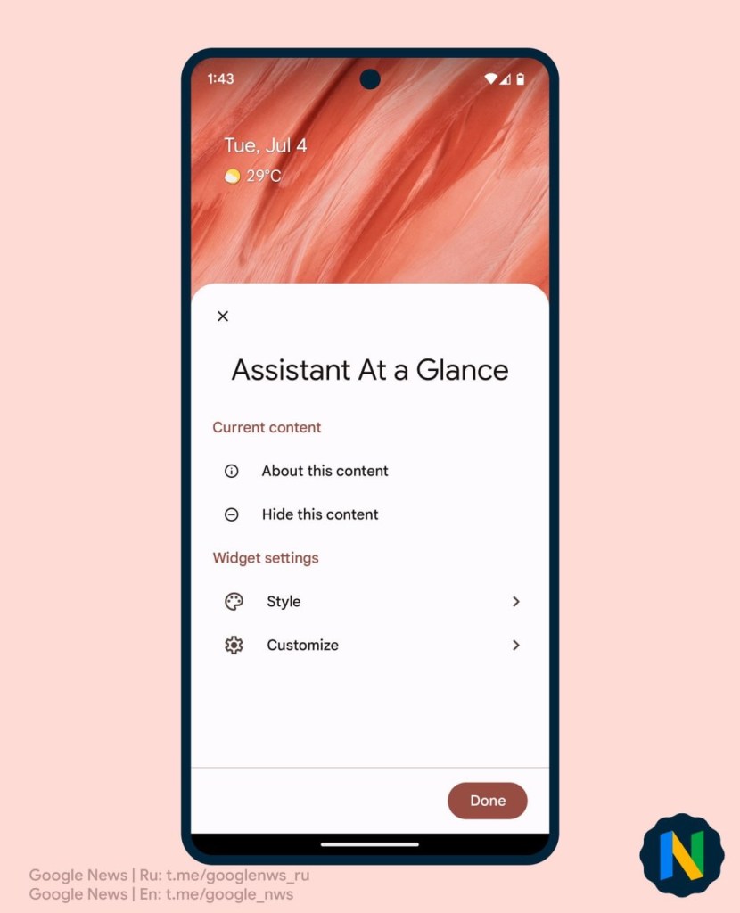 In the future it will have a pill-shaped container where the weather will be highlighted in a pie form with a colour accent. There will also be a 3-dot button on the widget to bring up a context menu. Presumably it will call the bottom sheet shown in the second picture, which also mentions the widget style change (I posted this a week ago on my Twitter).