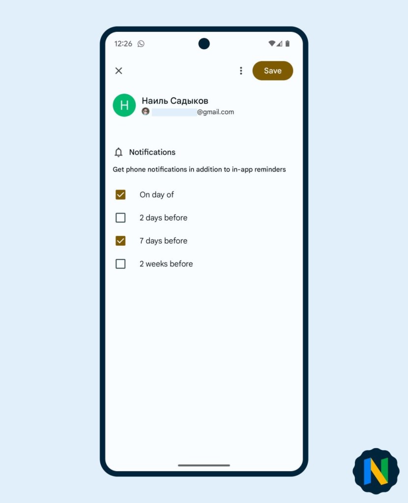 Here you will be able to set up notifications about significant events for each contact and for each date separately.